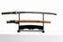 The highest quality lightweight aluminum alloy full tang kagum blade (slightly different than katana) with our signature genuine brass handguard in Asian Orchid design. Handles are made of 100% genuine black leather with ray skin and brass ornaments. Ray skins are available in our signature modern black or classic white. The Trailblazer sword scabbard is made of real wood with detailed wood texture finish with a hand-etched Korean tiger design to complete its authentic. rustic and natural look and feel. Every scabbard is custom fitted by hand to ensure the perfect fit and smoothest and softest housing to fit like a glove. Each scabbard is unique to its sword. All sword parts (except the aluminum blade) are the same authentic high grade components that are used for all our genuine sharp-edged swords and are made for actual use and real cutting applications. (Sword display stand not included)